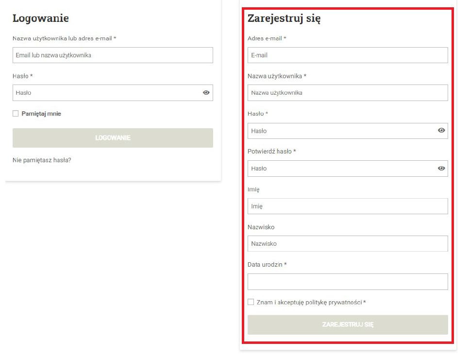 W formularzu rejestracyjnym należy podać wymagane informacje.